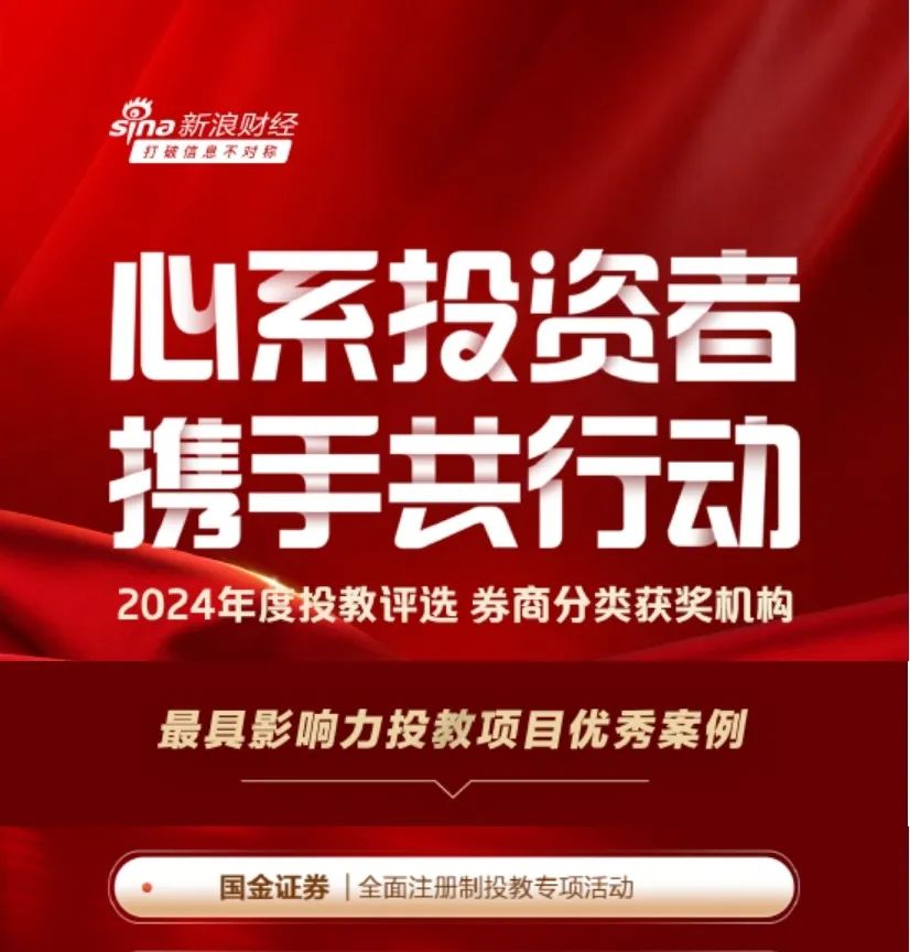 日前,国金证券凭借“全面注册制投教专项活动”在新浪财经举办的“心系投资者”投教评选中脱颖而出,荣获“最具影响力投教项目优秀案例”。