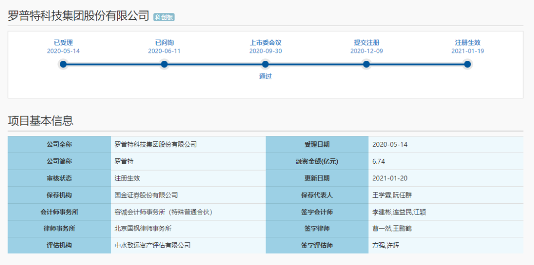 在多家知名机构加持之下,罗普特于2020年9月30日即通过上市委会议。2021年2月17日,罗普特敲钟上市。