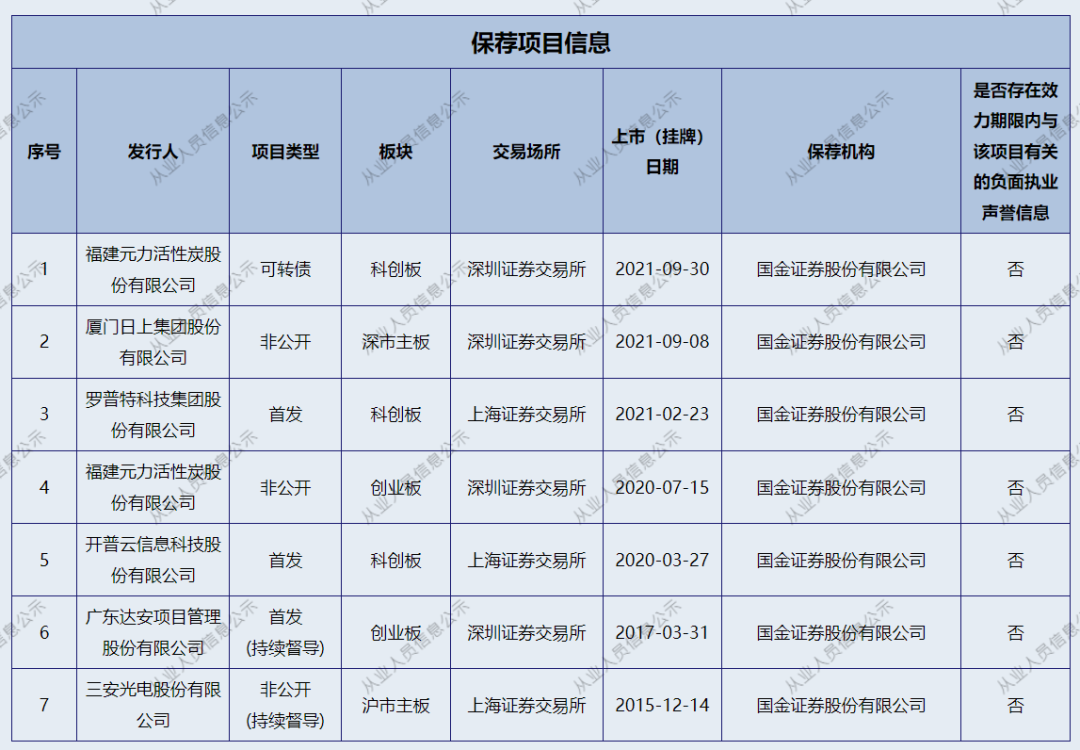 截至目前,国金证券共有297名保代,其中132名保代未有成功签署项目记录。而本次被罚的王学霖和阮任群,名下分别有7单和3单项目。并且此前没有处罚记录,可以说是资历悠久,“历史清白”。