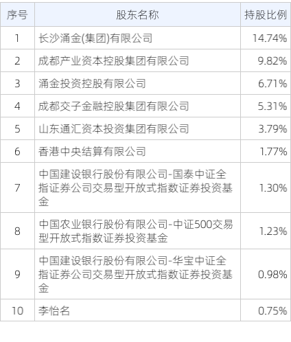 公司股东户数为14.86万户,前十大股东持股数量为17.22亿股,占总股本比例为46.39%,前十大股东持股情况如下:
