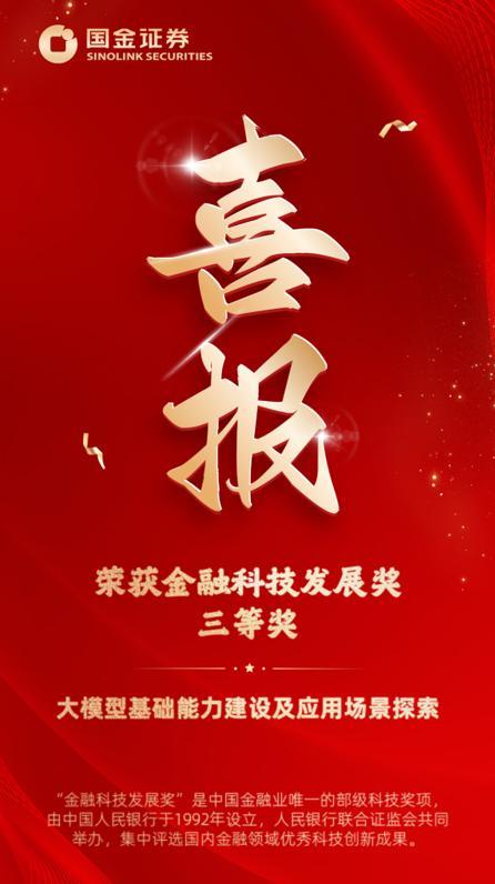 日前,中国人民银行公示“2023年度金融科技发展奖”,国金证券“证券公司新一代数据中台及研运管维一体化系统”荣获二等奖、“大模型基础能力建设及应用场景探索”荣获三等奖。