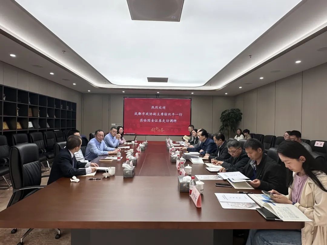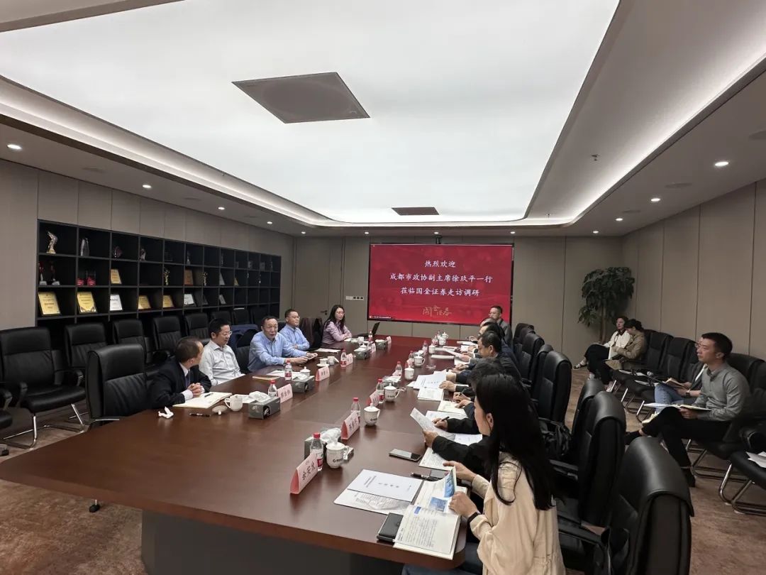 成都市政协经济委主任王天刚,副主任周光志、陈修怀,青羊区政协主席陈赋,市委金融办副主任陈燕等市级相关部门负责同志参加。国金证券党委委员、副总裁李蒲贤,总裁助理李登川,投行西南大区总部西南新兴产业与战略事业部总经理向俞洁,财富委财富产品中心总经理郭佳伟对其一行进行接待。