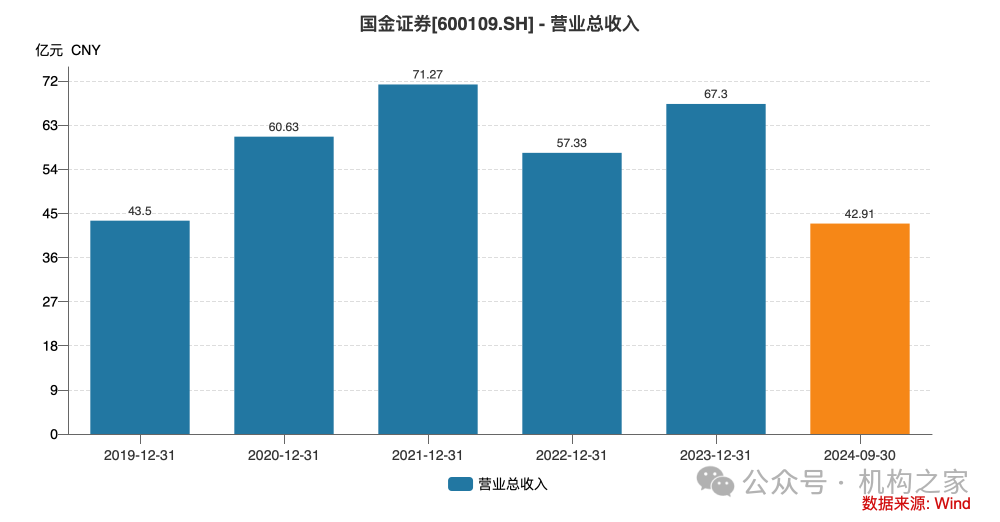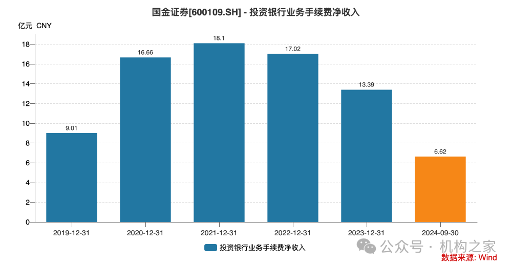 尽管推出了一系列改革措施,但国金证券前路依然充满挑战。从最新财务数据来看,2024年前三季度,公司实现营业收入42.91亿元,同比下降14.66%;净利润仅为9.03亿元,同比骤降29.02%。更令人警惕的是,其核心业务之一——投资银行业务手续费净收入呈现显著下滑趋势:前三季度仅录得6.62亿元,同比暴跌39.97%。