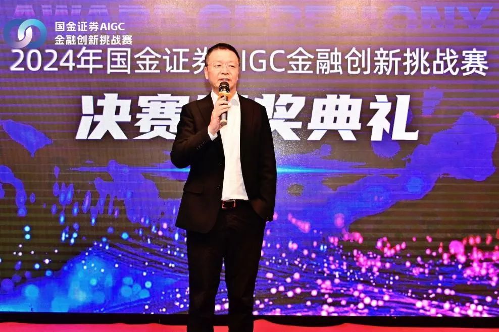 在颁奖盛典上,国金证券党委副书记、总裁姜文国进行了总结发言。姜国文表示,AIGC金融创新挑战赛在推动公司创新发展中的重要意义,并对所有参赛的业务和信息技术同事表示衷心感谢。他特别肯定了首席信息官王洪涛在AI技术战略布局中的前瞻性眼光,并指出信息技术部门完成了大模型的基础部署,为参赛团队创新实验和日常业务应用奠定了坚实基础。