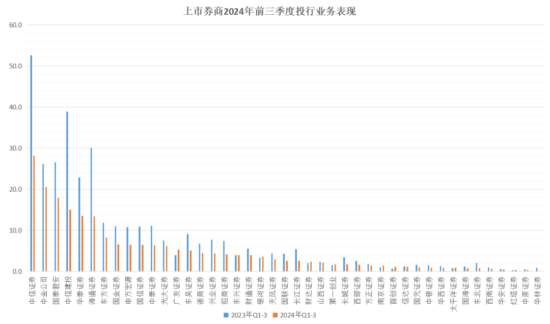 2023年,国金证券投行业务净收入13.39亿元,同比下降21.30%。而在2024年前三季度,国金证券投行业务净收入6.62亿元,同比下降39.97%。而这一业绩在上市券商中排名第8,超过申万宏源、国信证券等头部券商。