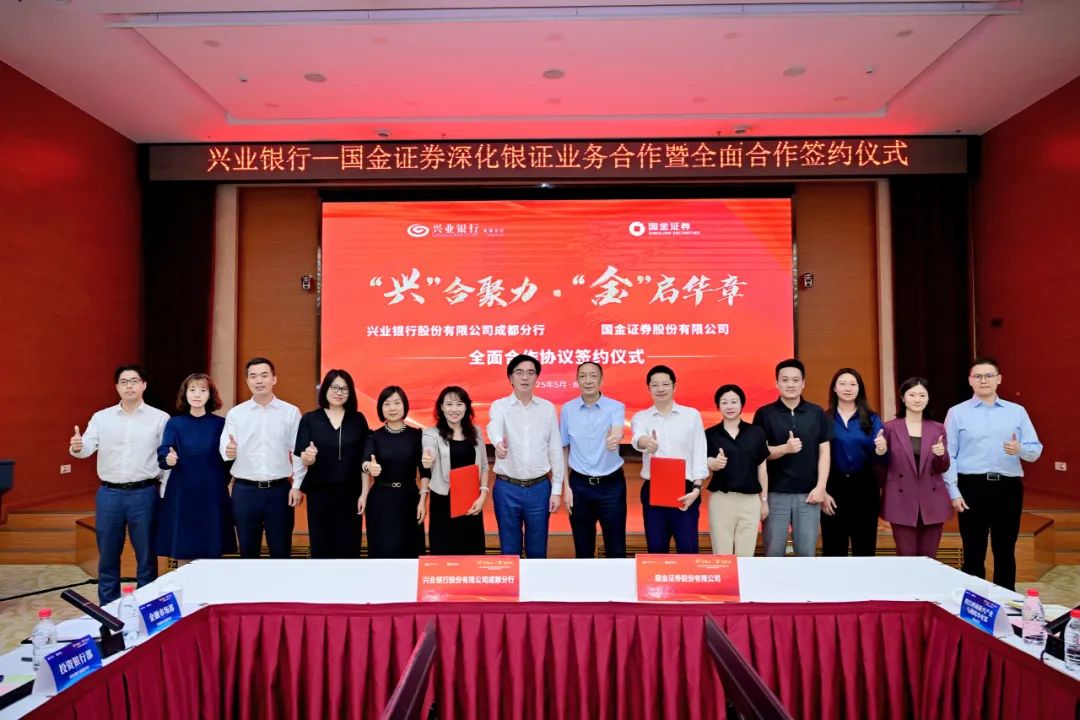日前,由兴业银行与国金证券联合举办的“‘兴’合聚力·‘金’启华章”深化银证合作业务推动会暨全面合作协议签约仪式在成都圆满举行。兴业银行成都分行党委书记、行长彭光辉,国金证券党委书记、董事长冉云,兴业银行总行同业金融部总经理助理陈慧君,国金证券总裁助理李登川,兴业银行成都分行党委委员、行长助理胡亚兰,国金证券财富委执行委员王英涛等领导出席本次会议。