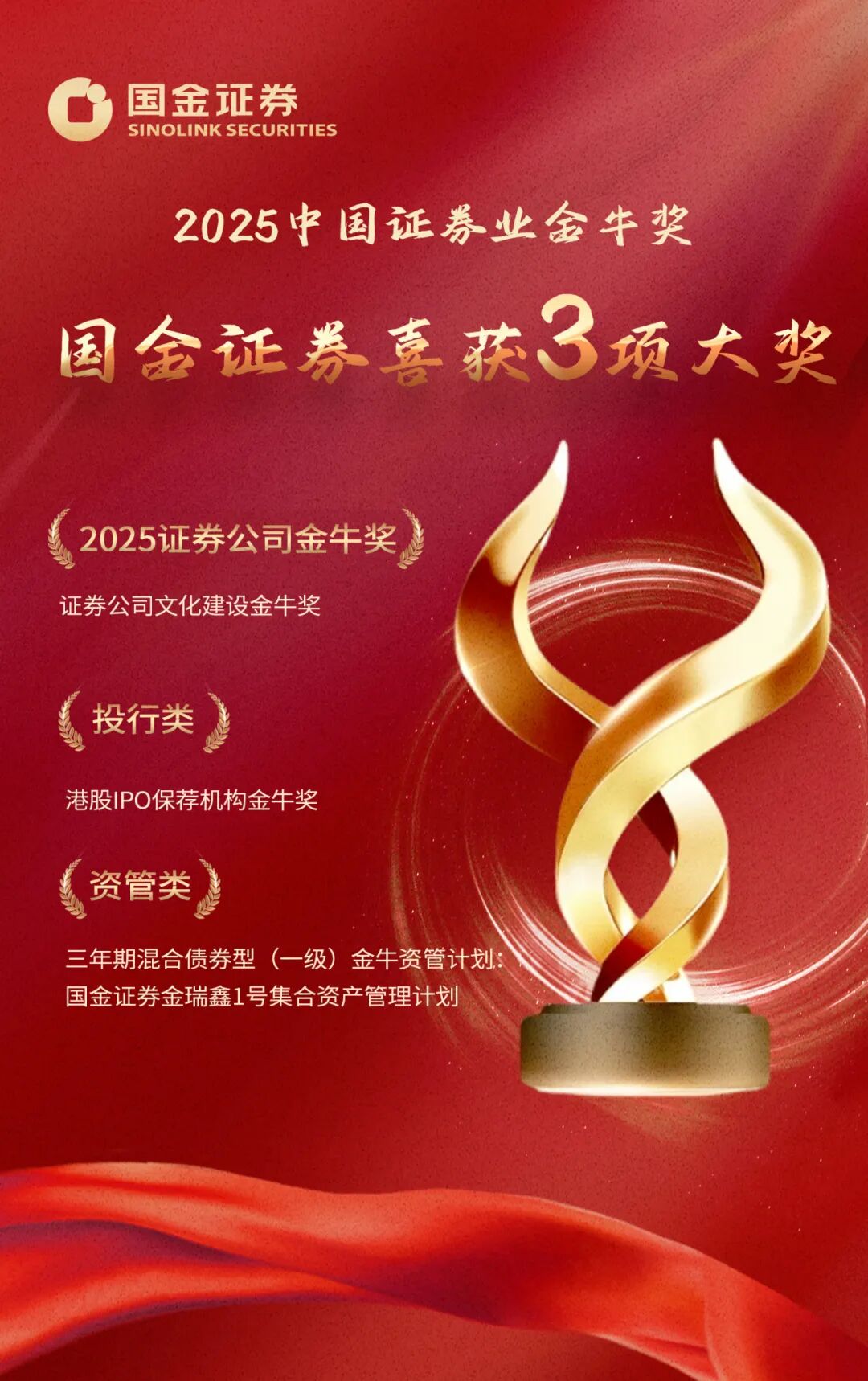 11月8日,由《中国证券报》主办的2025证券业高质量发展大会暨证券业金牛奖颁奖典礼在福建厦门圆满落幕。国金证券凭借在文化建设、港股保荐方面的突出表现,荣获“证券公司文化建设金牛奖”“港股IPO保荐机构金牛奖”;国金资管的“国金证券金瑞鑫1号集合资产管理计划”摘得“三年期混合债券型(一级)金牛资管计划”奖项。