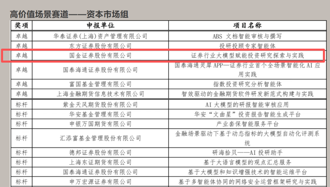近日, 国金证券 人工智能实验室在2025年人工智能大模型金融领域创新应用大赛中,以《证券行业大模型赋能投资研究探索与实践》项目荣获“高价值场景赛道——资本市场组卓越奖”,并同时获得上海金融系统职工“人工智能训练师” 授证。