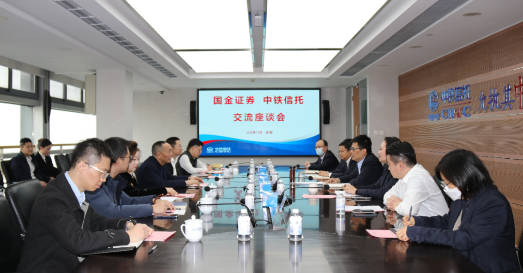 12月16日, 中铁信托 与 国金证券 在成都开展业务合作座谈,并签署了战略合作协议。 中铁信托 党委书记、董事长余赞, 国金证券 党委书记、董事长冉云出席会议。 国金证券 总裁助理李登川、 中铁信托 党委委员、副总经理严震,总经理助理何茜参加会谈。