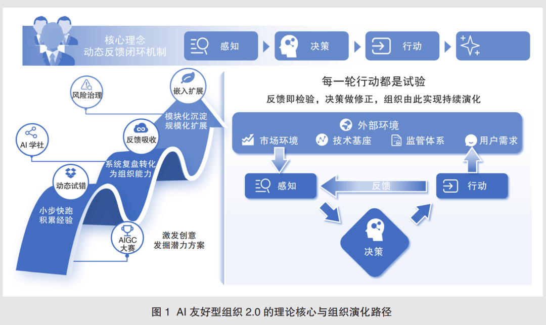最核心的变化,是从“静态协同”转向“动态进化”。1.0时代,AI应用多是“定好方案再推进”,比如先试点办公助手再推广;2.0则引入“控制论”思路,建立“感知-决策-行动-再感知”的闭环,避免“一套方案用到底”。