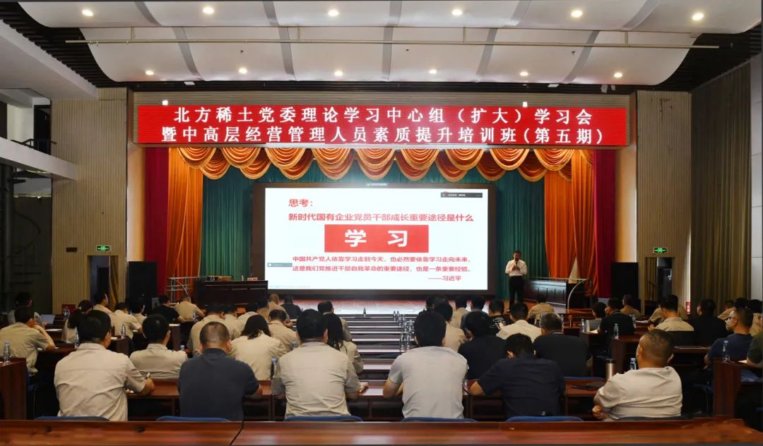 8月10日,中国北方稀土党委理论学习中心组(扩大)学习会暨中高层经营管理人员素质提升培训班(第五期)举办。北方稀土在包领导班子成员,机关各部门负责人、管理序列C层级人员、技术业务序列三层级及以上人员;在包控股以上分子公司经营管理团队成员、技术业务序列五层级及以上人员参加。培训采取现场授课与线上授课相结合的方式开展。