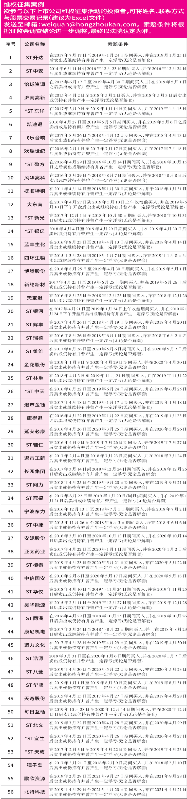 基于以上违法事实,根据相关司法解释,如果投资者于2017年2月3日至2019年4月22日期间买入*ST天成,并在2019年4月23日后卖出或仍持有并曾产生一定浮亏(无论是否解套)均可发起索赔,您只需将姓名、联系电话与交易记录(建议为Excel文件)发送到weiquan@hongzhoukan.com的邮箱,参与由《证券市场红周刊》“民间维权”栏目组织的索赔征集活动,以维护自身合法权益。广大投资者在获得赔偿前无需支付任何律师费用。