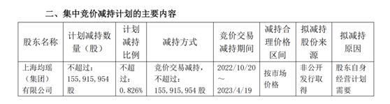9月21日,中国东航发布公告称,均瑶集团因自身经营计划需要,自本公告披露之日起15个交易日后的6个月内,拟通过集中竞价交易方式减持其持有的中国东航股份不超过约1.56亿股,占中国东航总股本的0.826%。
