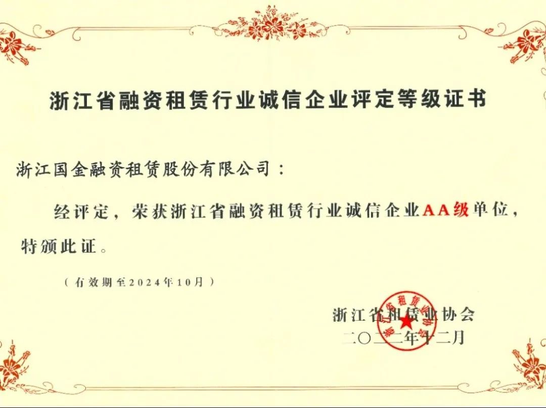 2月9日,浙江省租赁业协会第七届四次理事会在杭召开,浙江东方旗下国金租赁荣获“2022年度浙江省融资租赁行业贡献奖”“浙江省融资租赁行业诚信企业AA级单位”“2022年度浙江省融资租赁行业统计先进单位”三项荣誉。
