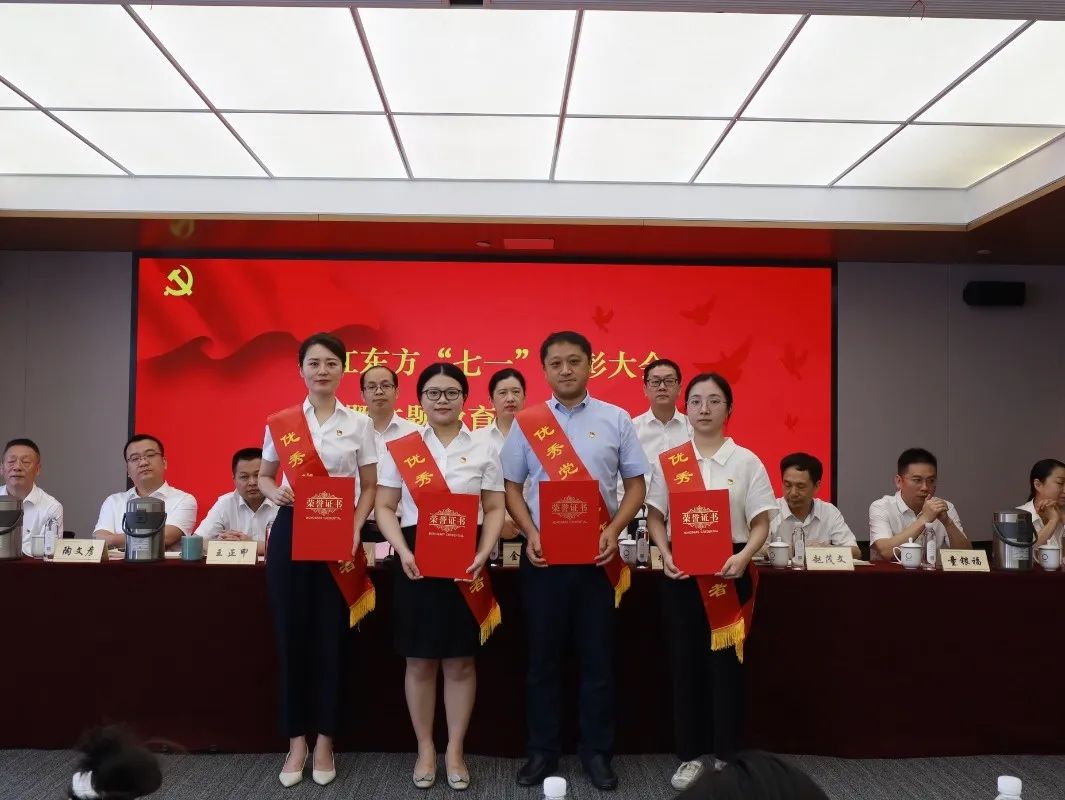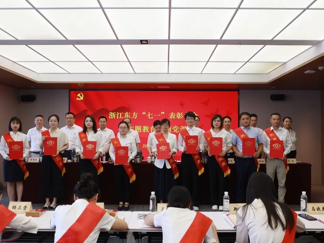 7月14日上午,浙江东方隆重召开“七一”表彰大会暨主题教育专题党课,热烈庆祝中国共产党成立102周年,深入学习贯彻习近平新时代中国特色社会主义思想,隆重表彰先进基层党组织、优秀共产党员和优秀党务工作者,教育引导各级党组织和广大党员感恩奋进、实干争先,奋力开创东方金控高质量发展新局面。省国贸集团党委委委员、副总经理,公司党委书记、董事长金朝萍作主题教育专题党课,公司党委副书记、总经理徐晓东主持会议。