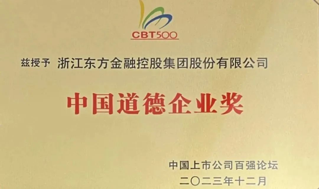 中国道德企业奖由论坛组委会授予积极回馈股东和社会、重视环境保护、最具社会责任的上市公司。浙江东方作为国有上市金控平台,始终心怀“国之大者”,坚守金融报国初心,勇担金融为民使命,以高水平的综合金融服务赋能实体经济高质量发展。公司坚持党建引领,深化国企改革,不断提升公司治理水平,以高质量发展成果回馈股东。公司助力绿色低碳发展,积极发挥综合金融优势,形成清洁能源、生态治理、绿色农业、绿色基建、绿色制造等绿色经营布局。公司推进普惠金融走深走实,通过结对帮扶服务乡村振兴,落地慈善信托,纵深推进“保险+期货”,开展公益赠险。此次公司获得“中国道德企业奖”也表明市场和社会对公司的肯定和认可。
