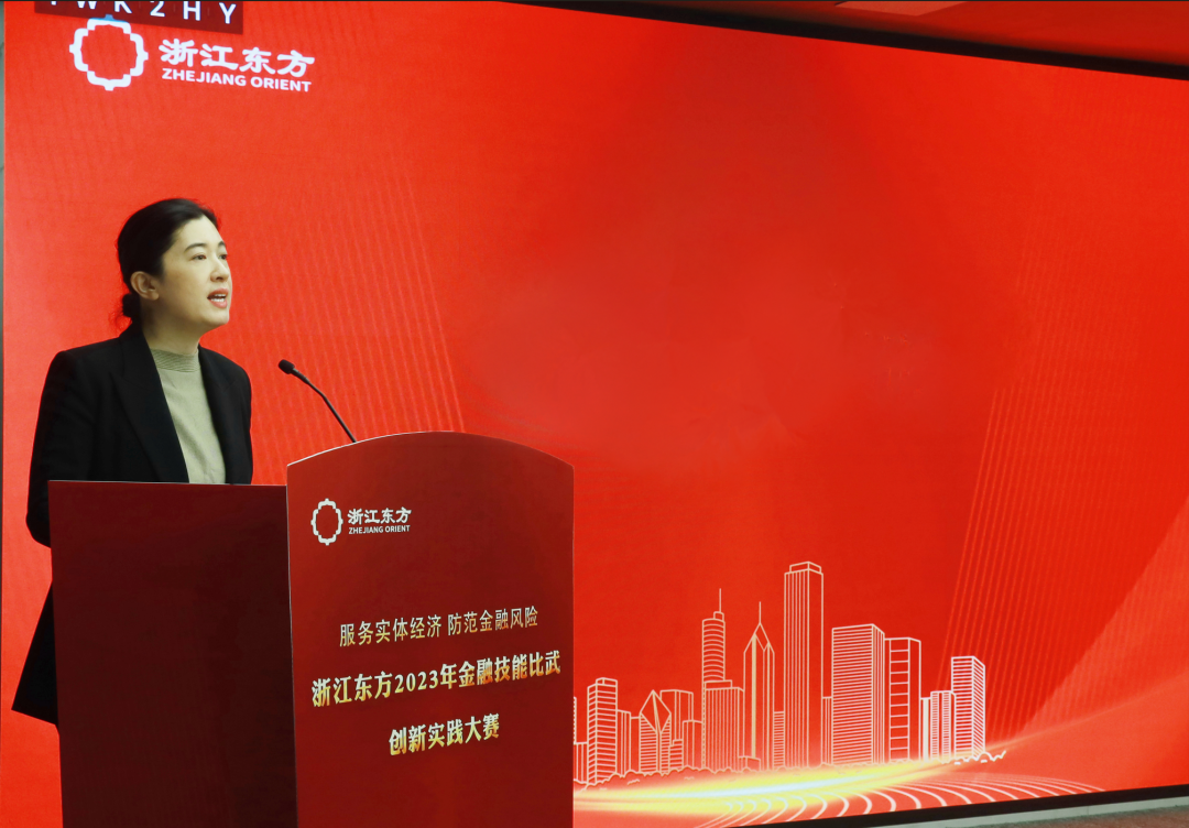 为深入学习贯彻习近平总书记在中央金融工作会议上的重要讲话精神,进一步提升金融服务实体经济质效,不断激发全体员工投身金融工作的热忱,12月20日,浙江东方举办2023年金融技能比武创新实践大赛。省国贸集团党委委员、副总经理,浙江东方党委书记、董事长金朝萍,省国贸集团党委委员、工会主席应达伟出席并致辞。省国贸集团总法律顾问、战法部总经理郭峻,经营管理部副总经理林军,投资管理部副总经理曹学文,东方嘉富创始合伙人陈万翔,浙江大学副教授俞彬担任本次大赛评委,省国贸集团工会办公室主任孙森伟、浙江东方工会主席裘高尧、大地期货党委副书记吴康、公司工会干部等50余人出席活动。