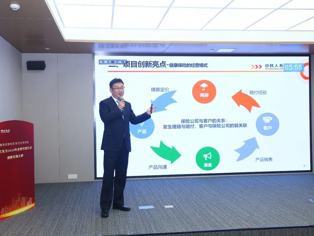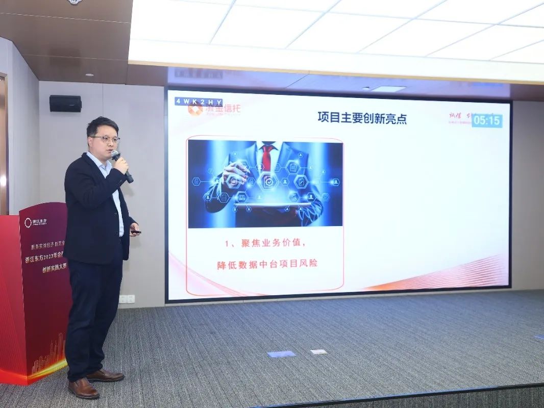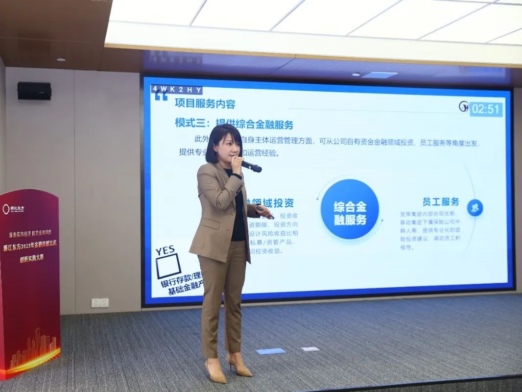 金朝萍在致辞中表示,金融要为经济社会发展提供高质量服务,做好科技金融、绿色金融、普惠金融、养老金融、数字金融“五篇大文章”。金融业要不断推进产品创新、模式创新、管理创新等。今天决赛的七个项目,深耕业务创新、数字赋能、管理提升等领域,展现了服务实体经济和社会民生、金控集团能力体系建设、管理创新和金融服务保障能力等方面的积极探索与大胆实践。金朝萍对全体员工在提升公司发展能级和提升金融服务实体经济质效方面,提出三点要求。一是找准定位,进一步明确创新的方向。要明晰创新目的、强化问题意识、坚持依法合规。二是放大格局,进一步开拓创新的路径。要主动融入中心服务大局,深入挖掘各板块之间的协同创新空间,纵深推进数字化改革,强化金融风险管控,推动金控平台稳健发展。三是精耕细作,进一步厚植创新的沃土。要积极营造崇尚创新的文化环境,持续完善创新制度体系,用好用活创新人才,激励干部员工改革创新和担当作为。