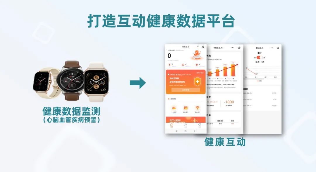 年初,在与专业智能设备研发的多家头部企业达成合作后,中韩人寿“潮起东方”结合智能可穿戴设备的健康保险数字化交互平台正式交付并启动内测。今年4月,“潮起东方”获得工信部备案,该平台正式面向市场提供健康互动服务。