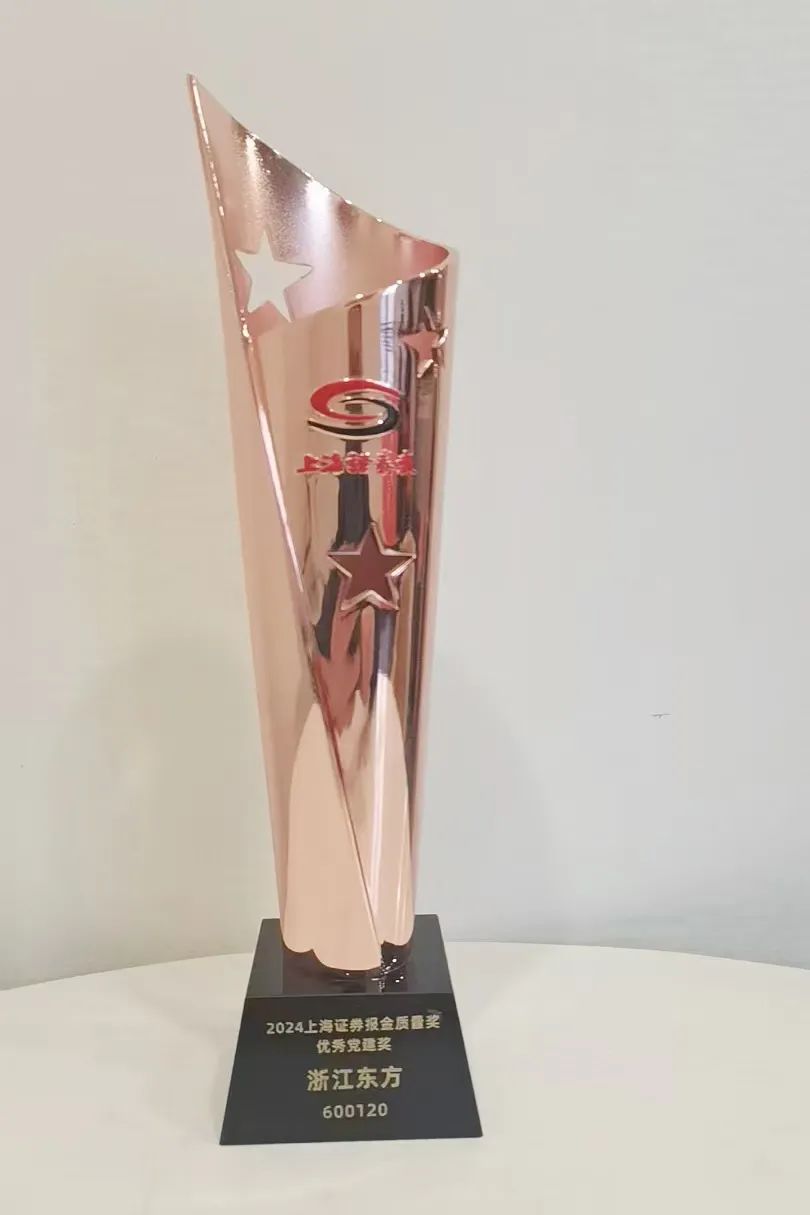 12月27日,由上海证券报主办的上证·滴水湖上市公司高质量发展大会暨“上证·金质量”颁奖仪式在上海举行,浙江东方荣获上市公司“金质量?优秀党建奖”。“金质量”奖是国内上市公司领域内颇具影响力的奖项之一,主要考量上市公司党建工作在有效促进上市公司治理,提升公司美誉度等方面发挥的作用。荣获该奖项,标志着业界对公司党建工作的充分肯定。