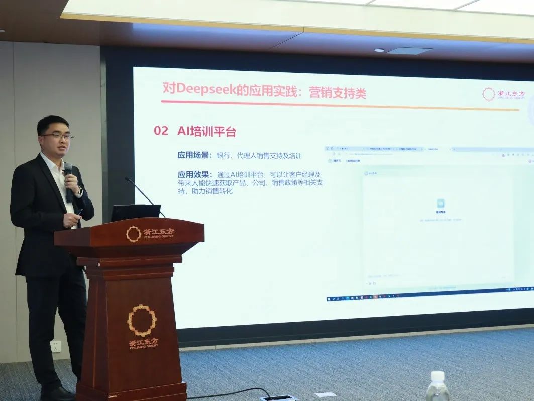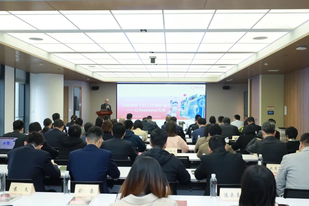 为深入贯彻习近平总书记关于发展新质生产力的重要论述,更好推动公司数字化转型发展,满足员工对AI前沿知识和科技成果的学习需求,3月13日公司举办“AI新趋势下的工作提效增质——以DeepSeek为例”主题活动。浙江东方党委书记、董事长金朝萍出席,公司其他领导班子、中层干部、党支部书记、工会干部及数字条线代表等70余人参加本次会议。
