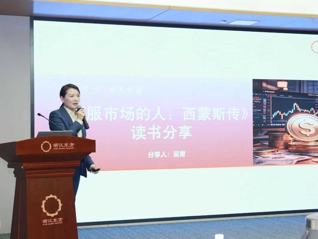 活动现场,信雅达科技公司总裁助理黄沈吉作了《AI技术在金融领域的实践应用》专题报告,深入分析AI大模型在金融场景中的创新落地成果,揭示AI技术革新对行业价值创造的推动作用。东方嘉富人寿数智科技部总经理胡平,从DeepSeek应用概述以及在保险业务场景中的实践性应用进行理论介绍和案例分享;东方嘉富资产股权投资部投资总监沈雪雷聚焦新一代AI大模型应用,分享其在行业研究分析、投资决策制定、知识库管理等工作场景中的实际应用。现场同步开展“书香东方”读书荐学环节,组织学习人工智能领域经典著作《征服市场的人:西蒙斯传》。