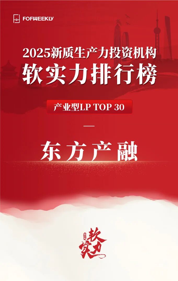 近日,母基金周刊(FOFWEEKLY)2025新质生产力投资机构软实力排行榜发布,浙江东方旗下东方产融凭借优异的股权投资能力和发展新质生产力的创新实践,荣获“产业型LP TOP30”奖项。此次获评充分体现了业界对东方产融综合实力与社会价值贡献的高度认可。