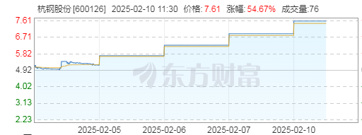 2月10日,杭钢股份盘中再度涨停,已连收4个涨停板,最新报价7.61元/股,总市值257亿元。