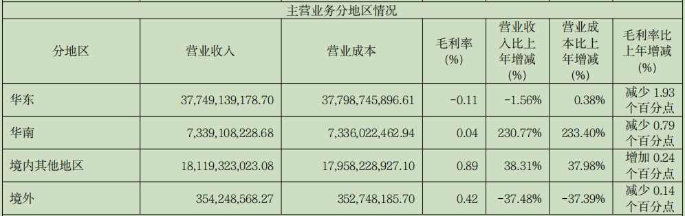 在业务地区上,占据营收大头同时也是杭钢股份所在地的华东地区,是国内唯一营收同比下降的。