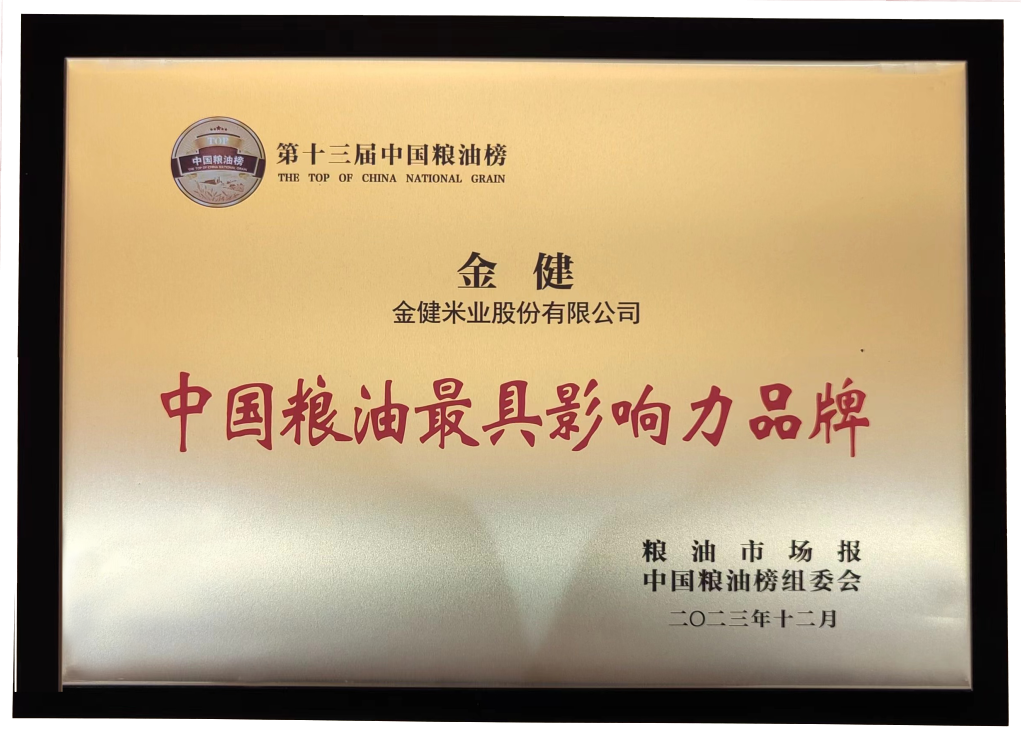 由粮油市场报主办的“2023中国粮油财富论坛”近日在北京举行。在“第十三届中国粮油榜颁奖盛典”环节中,“金健”蝉联“中国最具影响力品牌”,这是金健继斩获“中国百佳粮油企业”、“中国粮油科技创新标杆企业”、“中国粮油领军品牌”等荣誉后,在中国粮油榜评选中再获殊荣。