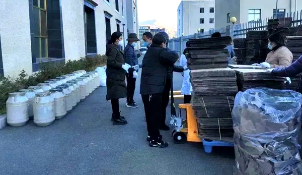 由于公司部分员工都被封控在各自的小区无法到岗,中药饮片厂领导班子就立即带领男员工组成的临时搬运队伍卸车装车。