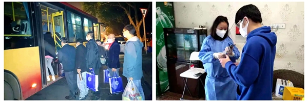 11月21日,第一批106名返岗员工于当日下午5点陆续抵达药厂门外,随后在防疫部门的指导下,待复工人员信息复核无误、核酸抗原检测结果合格后再分批前往宿舍地,再按照防疫要求办理手续入住后,已是深夜十二点。22日上午10点,第二批29名返岗员工顺利入住宿舍,随即开始“三天三检”的隔离观察。
