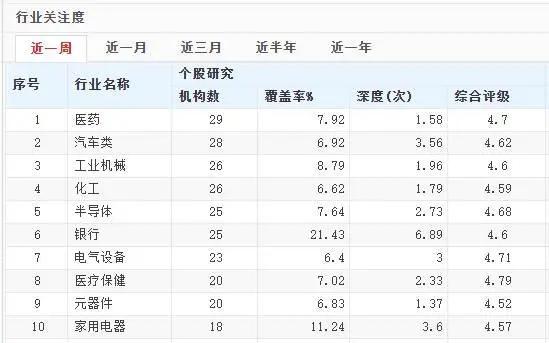 据通达信iTendx数据显示,近1周行业关注度最高的为医药、汽车类、工业机械、化工。