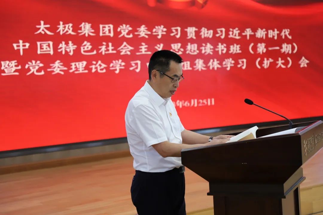 6月25日,为深入开展学习贯彻习近平新时代中国特色社会主义思想主题教育,太极集团召开主题教育第一期读书班暨党委理论学习中心组第二次集体学习(扩大)会,太极集团党委书记、董事长李阳春主持会议,太极集团及太极股份领导班子、中层干部,各子公司领导班子,党群、纪检和巡察部门相关人员等近三百人通过现场及视频方式参加学习。