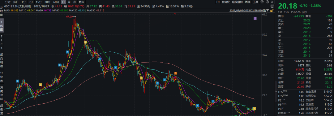 尽管太极集团强调补税不涉及行政处罚,但市场已用股价下跌作出回应。二级市场上,截至3月27日太极集团股价下跌1.09%,3月27日下跌3.35%,总市值112亿元。