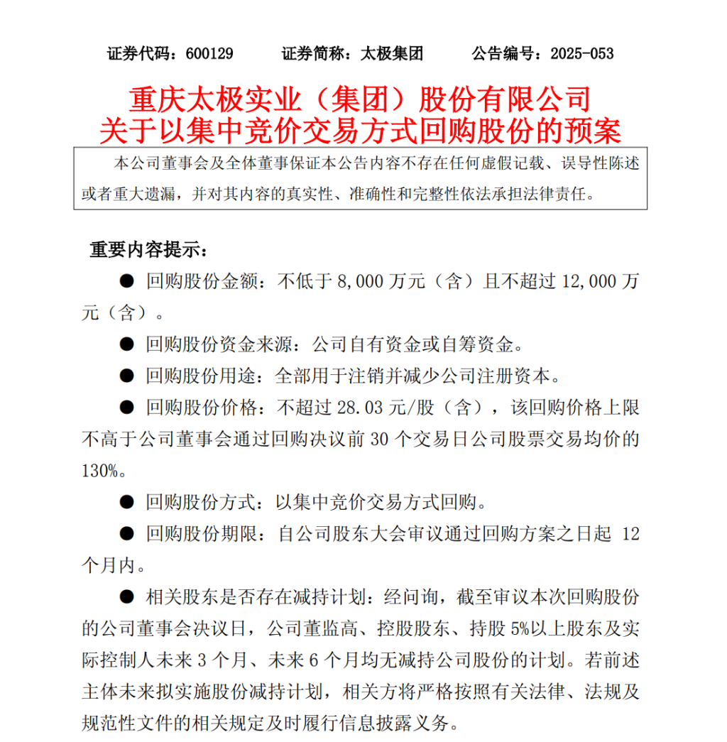 公司强调回购基于“对未来发展的信心及价值的高度认可”,所有回购股份将注销以减少注册资本。但值得玩味的是,回购资金上限仅占公司2024年底净资产的3.44%,对改善资本结构作用十分有限。太极集团的亿元回购计划更像是信心救生筏,能否真正扭转企业命运,仍取决于产品创新突破与运营效率提升的实际成效。