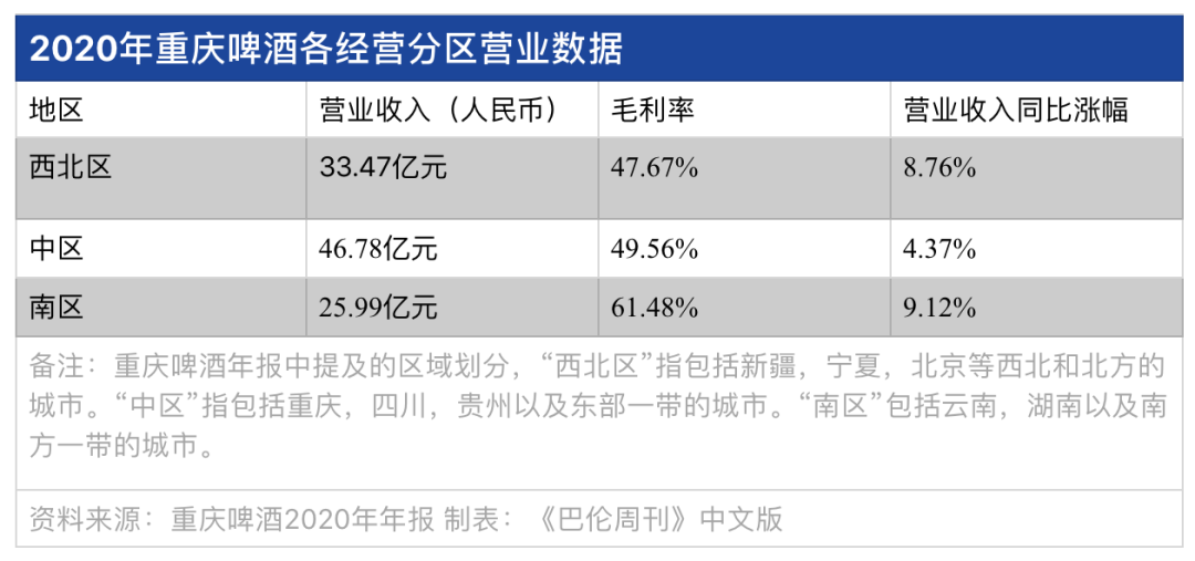与嘉士伯合作后,重庆啤酒的势力范围从重庆、四川和湖南三省扩展到新疆、宁夏、云南、广东等地。但尽管如此,重庆啤酒的主战场迄今依然在中国西部地区;另一方面,资本的入场和品牌的进驻,二者在市场份额层面上并不能完全等效。