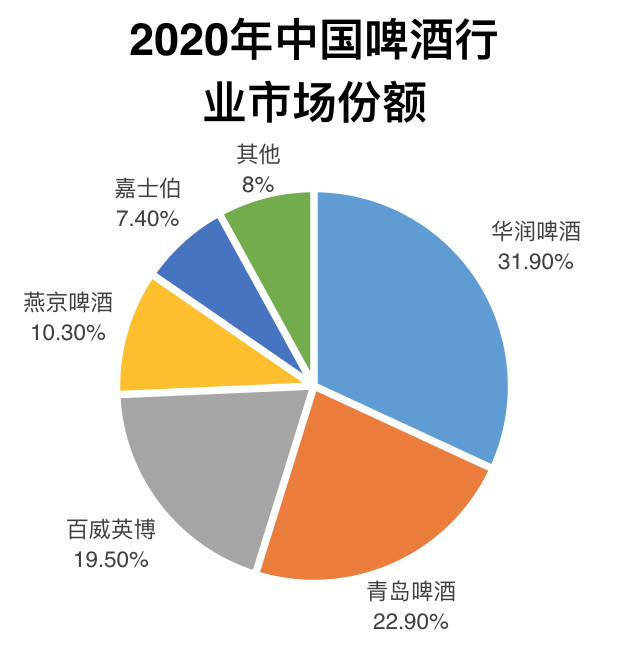 中国酒业协会的数据显示,2020年,中国啤酒市场被五大集团瓜分,市场占有率高达92%。可以看到,包括了重庆啤酒在内的嘉士伯仅位居第五。