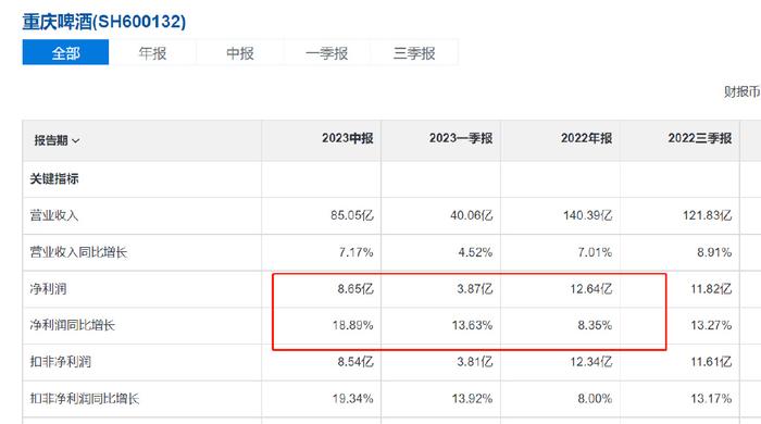 重庆啤酒的财报显示,2020年到2022年,其净利润每年保持了近亿元的增长,营收保持了10亿元左右的增长。