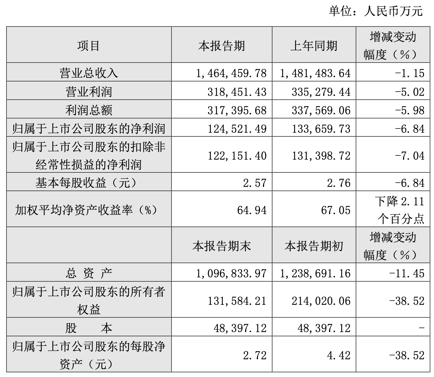 日前,重庆啤酒(600132)公布2024年度业绩快报,报告期内,公司实现营业总收入146.45亿元,同比减少1.15%;归母净利润12.45亿元,同比减少6.84%;扣非净利润12.22亿元,同比减少7.04%。(此前报道:重庆啤酒“外忧”愈烈,“内斗”升级:营收净利双下滑,大额合同纠纷未决)