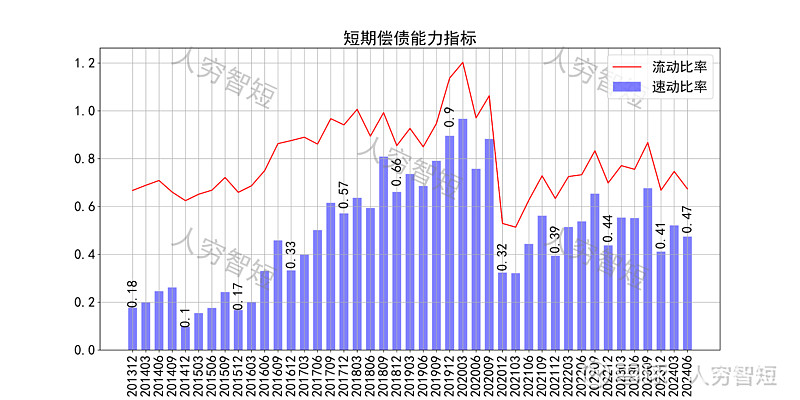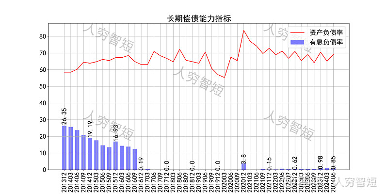 长期偿债指标中,资产负债率维持区间震荡,近年增加至70%左右,有息负债率约为0.85%,几乎无债务负担,且对供应链上、下游资金占用较强。短期偿债指标中,流动比率、速动比率很弱且存在差异,与存货规模相关联,资产短期流动性弱。