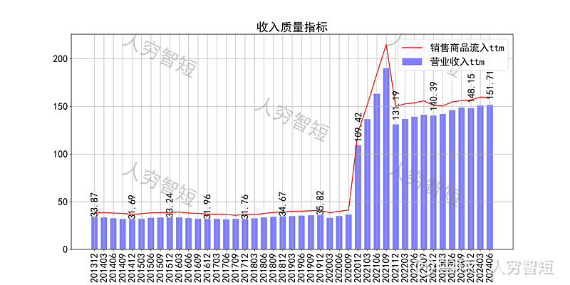 收入、利润的现金含量来看,近年来销售商品流入的现金流完全覆盖营业收入;经营现金流波动较大,平均净额高于净利润,主要差异源于应收应付项目变动、存货增减以及各类资产折旧摊销等。
