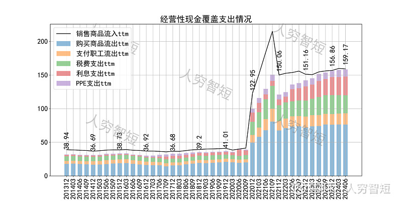 现金流收支方面,近几年销售商品获得的现金流足以满足日常的成本、费用及扩大再生产,结余一般,随着近年来资本支出、股利支出增加,现金流结余有所降低,处于紧平衡状态。