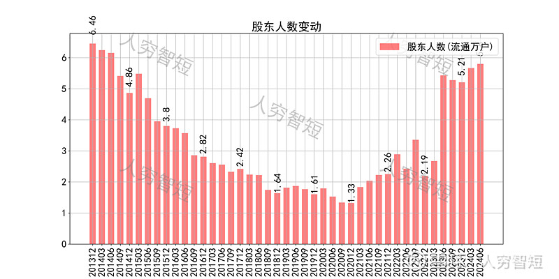 其他可能影响股价表现的因素中,前十大股东持股比例宽幅震荡,最新约69.7%;随着股价持续下滑,股东户数自底部攀升,目前处于十年较高位置,约5.8万户;质押情况较为稳定,最新质押比例为0%。
