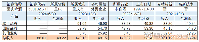重庆啤酒是世界三大啤酒公司之一——丹麦嘉士伯集团在中国的运营平台,也是中国第四大啤酒厂商。旗下包括国际品牌嘉士伯、乐堡、1664、格林堡、布鲁克林等,本地品牌乌苏、重庆、山城、西夏、大理、风花雪月、天目湖、京A等。2024年公司持续推进多元化品牌组合和高端化战略,半年度实现啤酒销量178.38万千升,同比增长3.30%,对应收入同比增长3.56%;其中高档酒(8元及以上)收入同比增长2.82%、主流酒(4-8元)收入同比增长4.37%(业绩快报显示年度收入为负增长,2024年下半年承压明显76,高端化未见明显效果)。截至2023年,重庆啤酒实际产能263万千升,在建产能50万千升,当期销量接近300万千升,产能有所不足。