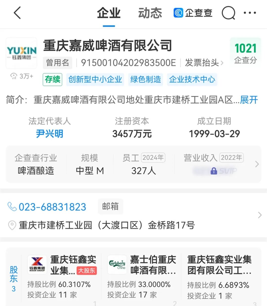 未来,重庆嘉威啤酒公司大概率会成为重庆钰鑫实业集团及关联方的全资子公司。