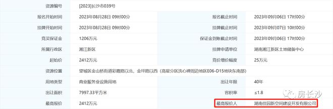 竞得人:湖南佳园新空间建设开发有限公司(佳园建设)