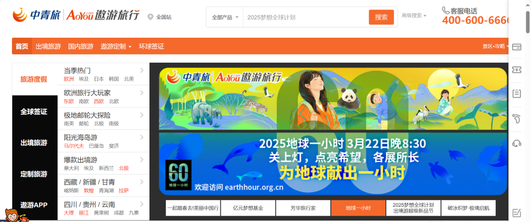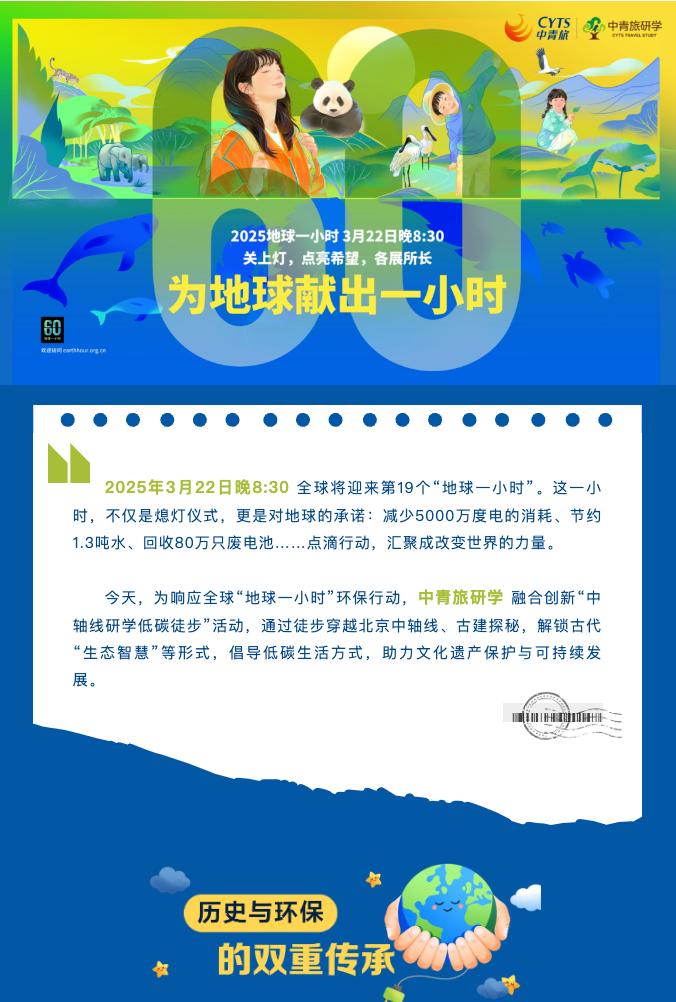 2024年|中青旅全员接力,呼吁“为地球献出一小时”!