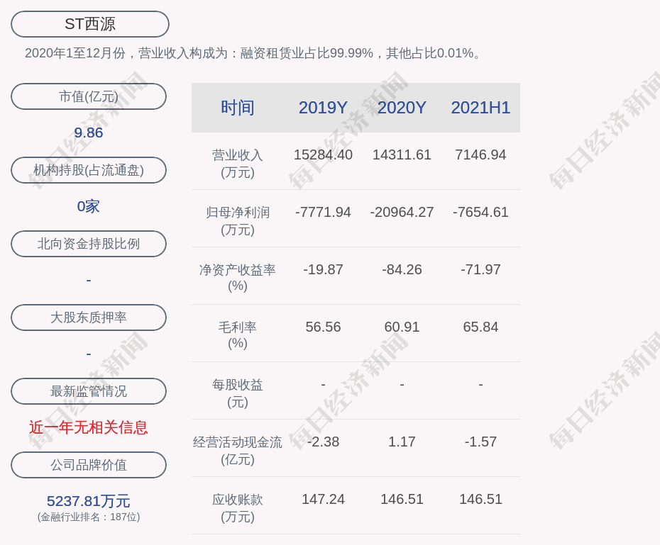 2020年1至12月份,ST西源的营业收入构成为:融资租赁业占比99.99%,其他占比0.01%。