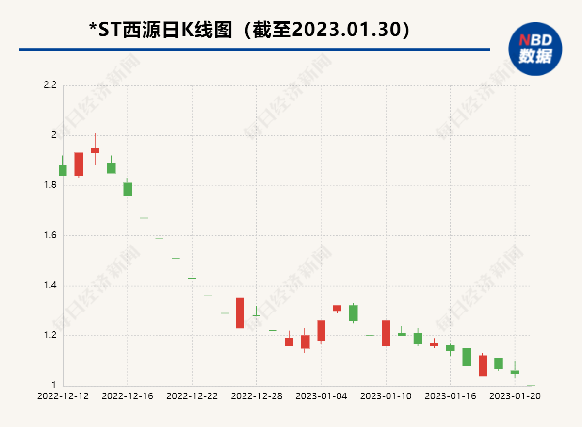 今日(1月30日),*ST西源(SH600139,股价1元,市值6.62亿元)股价开盘一字跌停。消息面上,*ST西源于1月29日晚间披露,经财务部门测算,预计2022年度的净利润为﹣1.3亿元~﹣1.6亿元,扣非后的净利润为﹣1600万元~﹣2100万元;预计2022年度实现营业收入为8万元~10万元,2022年度扣除与主营业务无关的业务收入和不具备商业实质的收入后的营业收入为0万元~1万元;预计2022年末归属于上市公司股东的净资产为﹣6亿元~﹣7亿元。